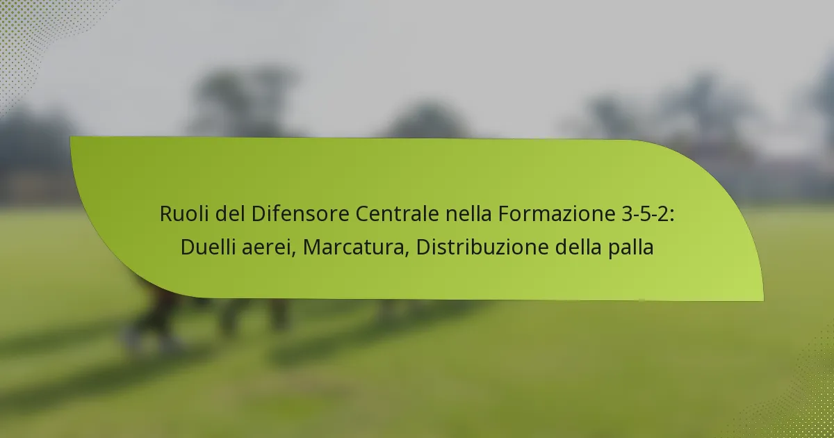 La formazione 3-5-2 prevede tre difensori centrali, il che influisce notevolmente sulle responsabilità e sui ruoli tattici dei difensori centrali. Questo schema enfatizza la solidità difensiva, consentendo al contempo flessibilità in attacco, richiedendo ai difensori centrali di eccellere nei duelli aerei, nella marcatura e nella distribuzione della palla.