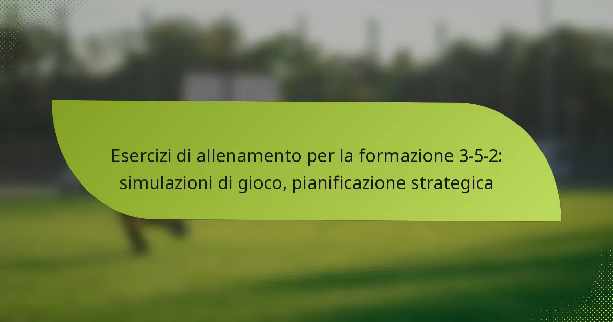 La formazione 3-5-2 è un assetto tattico nel calcio che prevede tre difensori, cinque centrocampisti e due attaccanti, enfatizzando il controllo del centrocampo e l’adattabilità. Per addestrare efficacemente i giocatori in questa formazione, gli esercizi devono concentrarsi sul miglioramento delle abilità, della coesione di squadra e della consapevolezza tattica attraverso simulazioni di gioco realistiche. Queste simulazioni consentono ai giocatori di esercitare i loro ruoli specifici mentre migliorano la dinamica complessiva della squadra e l’adattabilità strategica contro varie formazioni avversarie.